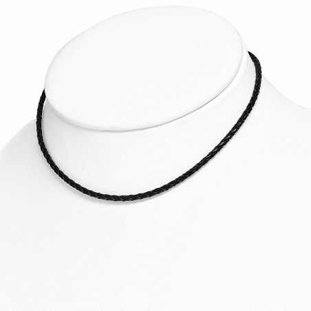 • Bracelet en cuir noir tressé avec fermeture par pince 45 cm x 3 mm