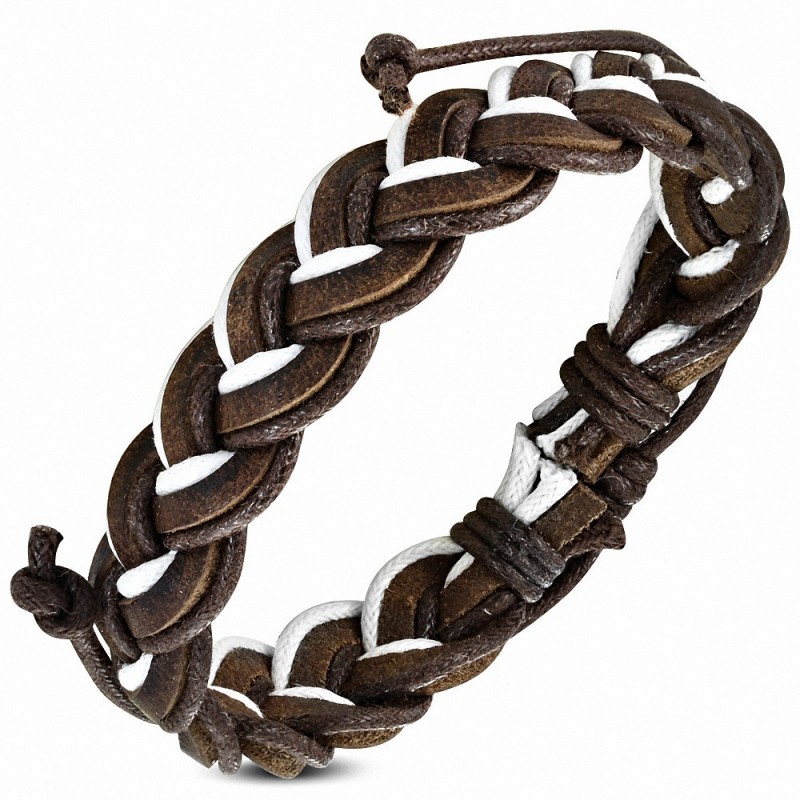 Bracelet en cuir marron ajustable tressé avec corde blanche et chocolat