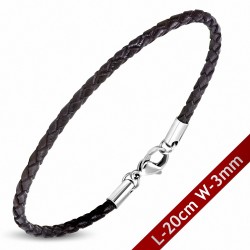 Bracelet ajustable tressé en cuir chocolat et cordes blanches