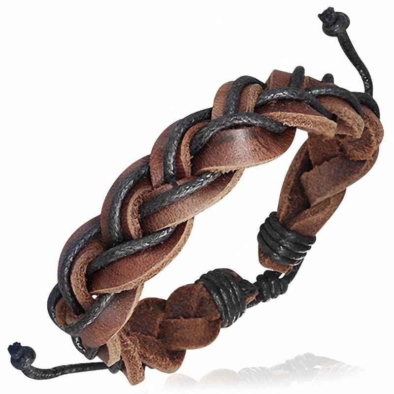 Bracelet en cuir tressé ajustable   envelopper la corde