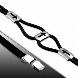 • Bracelet en caoutchouc noir avec découpe en acier inoxydable de style croisé
