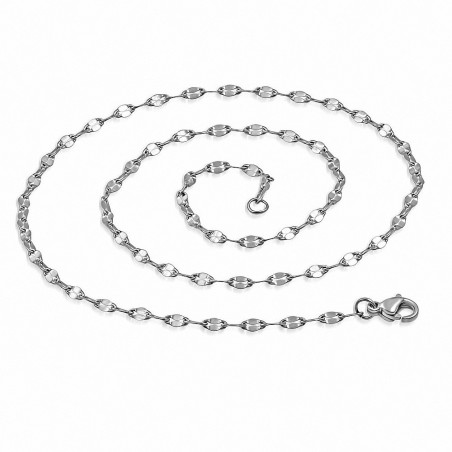 61cm x 2mm | Chaîne à maillons ovales plats en acier inoxydable avec fermoir à pince de homard