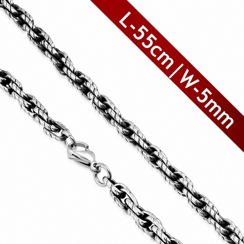 55cm x 5mm | Chaîne à maillons elliptiques en acier inoxydable 2 tons avec fermoir à pince de homard