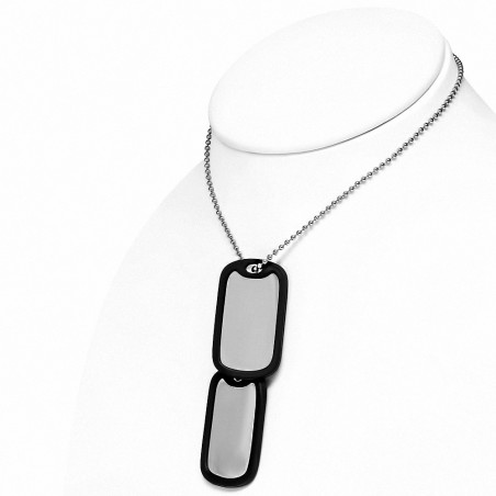 • Collier en acier inoxydable à maillons avec gravure en 2 pièces en acier inoxydable avec caoutchouc noir