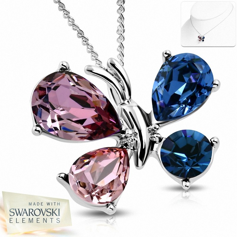 Alliage avec collier de charm papillon doré blanc avec cristaux de   améthystes et saphirs bleus