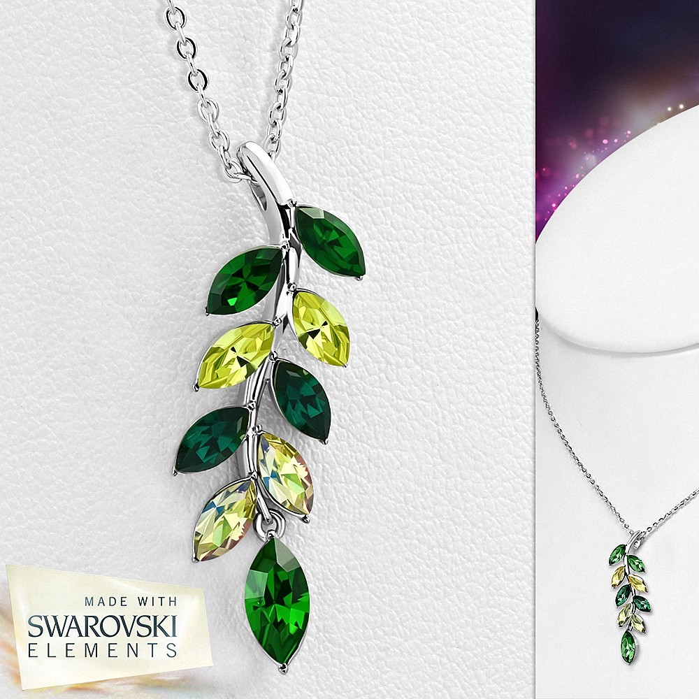 • Alliage avec collier de chaîne de multiplicateur de vigne à feuille de vigne doré blanc avec cristaux colorés de