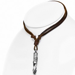 • Alliage de mode 3-ton Fleur De Lis Fleur Drill Bit Charm réglable Brun Véritable Cuir Biker Collier