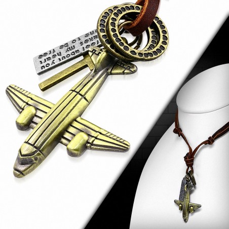 Alliage de mode alliage 3 tons bagues croix tag charm réglable brun collier en cuir véritable