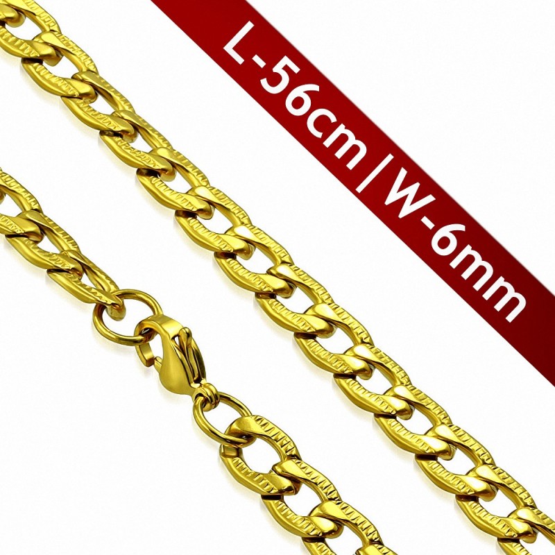L-56cm L-6mm | Chaîne à maillons cubains à maillons plats doré avec fermoir à pince de homard en acier inoxydable