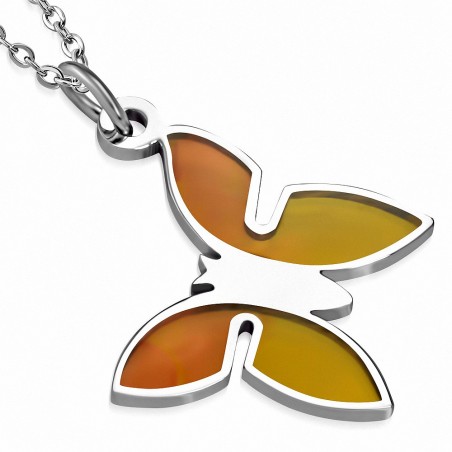 Pendentif en acier émaillé papillon rouge et orange
