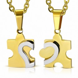 • Pendentif couple en acier doré cœur puzzle 2 parties