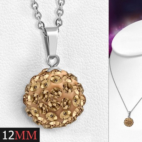 12mm | Collier avec chaîne à pendentif Shamballa en acier inoxydable Argil Disco Ball avec pêche couleur CZ