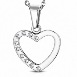 Pendentif en forme de cœur en acier inoxydable pavé de strass