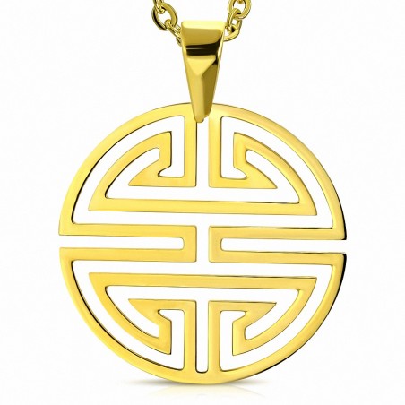 Pendentif cercle en acier doré avec motif labyrinthe