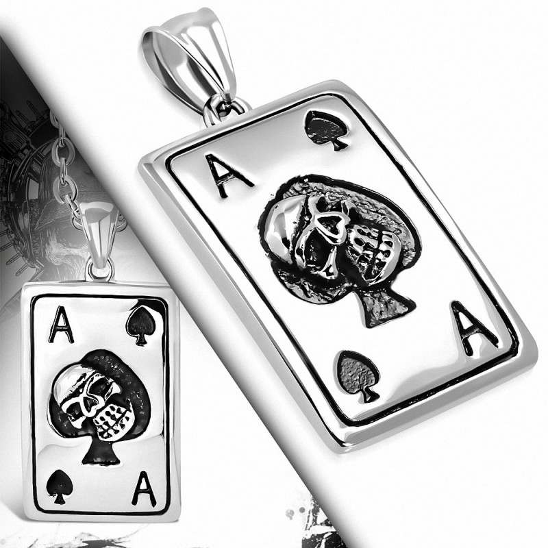 • Pendentif homme biker en acier carte as de pique avec crâne