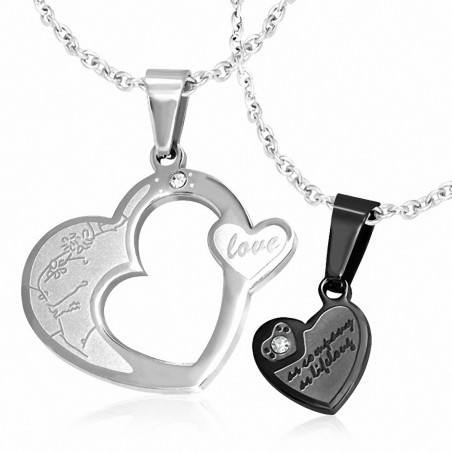 • Couple de pendentif de promesse de coeurs de promesse de vigne de fleur de vigne de fleur en acier inoxydabl