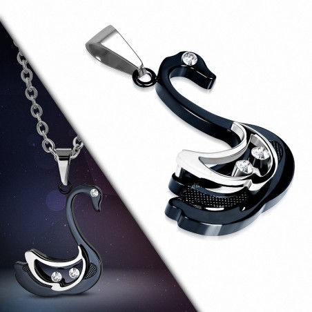 Pendentif avec charm de cygne 2 tons en acier inoxydable gemme