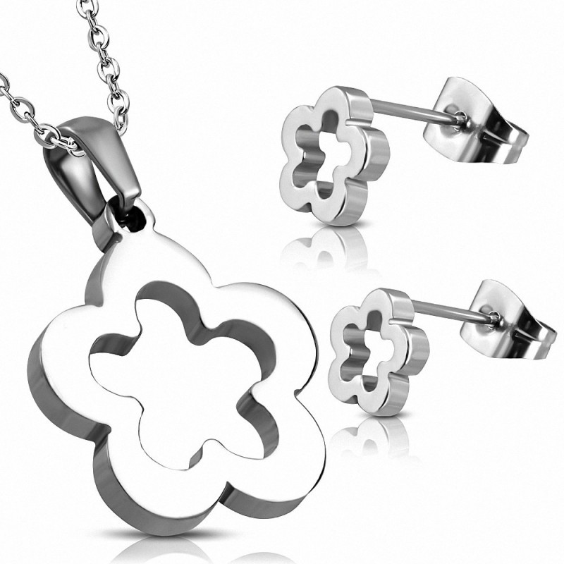 Pendentif en forme de breloque avec fleur en étoile en acier inoxydable et paire de boucles d'oreilles (SET)
