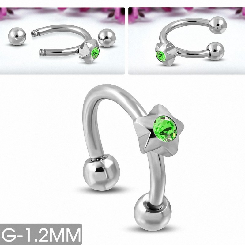 Piercing fer à cheval en acier inoxydable avec péridot CZ | Boule 3mm | G-1,2 mm