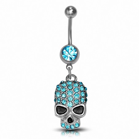 Piercing nombril tête de mort en acier inoxydable bleu ciel pendentif avec CZ | Boule-5mm | G-1