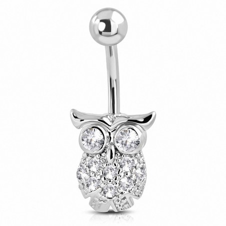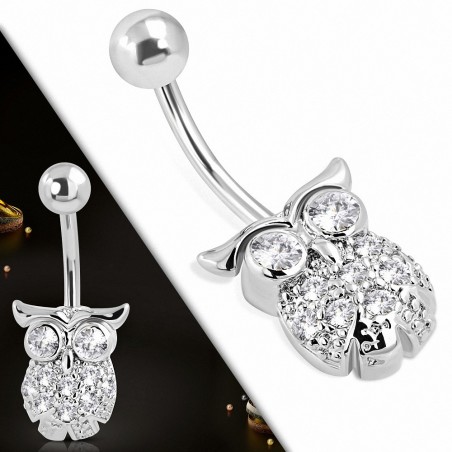 Piercing nombril de nombril courbé Barbell en acier inoxydable avec haltère et cz incolore | Boule-5mm | G-1