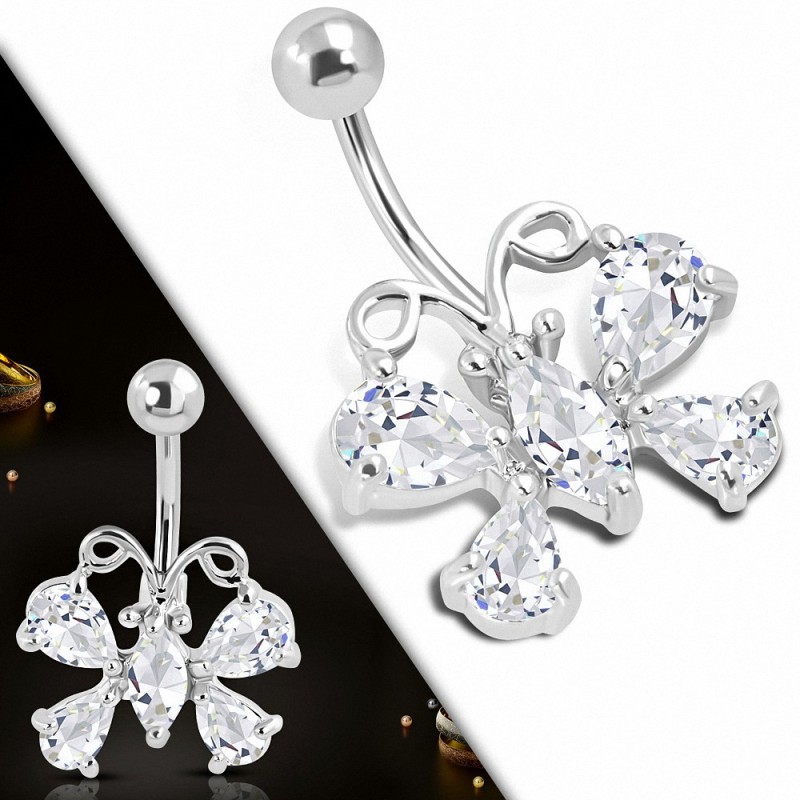 Breloque papillon en acier inoxydable pendantes Piercing nombril avec CZ transparent | Boule-5mm | G-1,6 mm