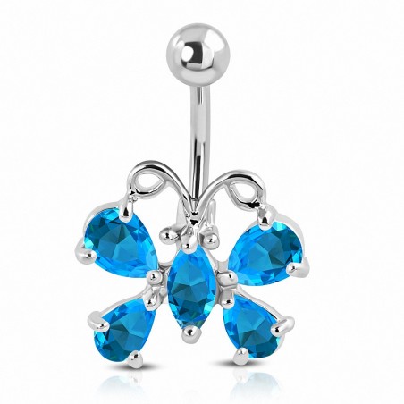 • Breloque papillon en acier inoxydable pendantes Piercing nombril avec saphir bleu CZ | Boule-5mm | G-1