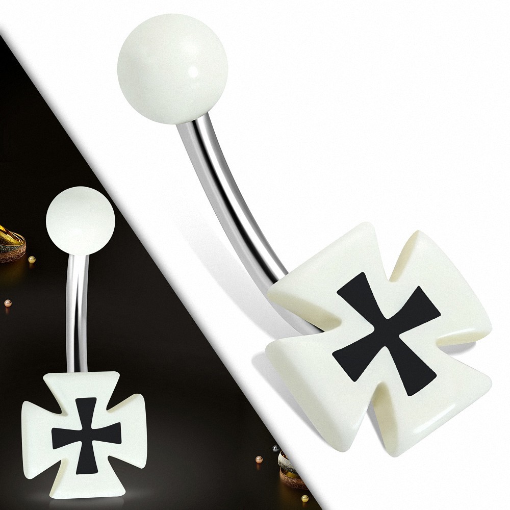 • Piercing nombril  en acier inoxydable avec croix pattee en acrylique blanc 3 tons | Boule-6mm | G-1