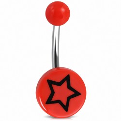 • Piercing nombril  acier inoxydable avec cercle rond en acrylique 3 étoiles en acrylique rouge | Boule-6mm | G-1