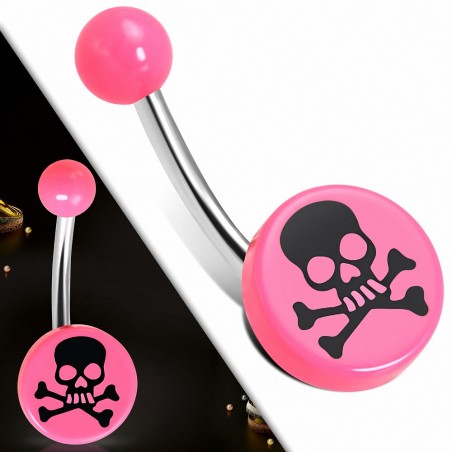 • Piercing nombril  en acier inoxydable acrylique rose 3 tons crâne rond cercle | Boule-6mm | G-1