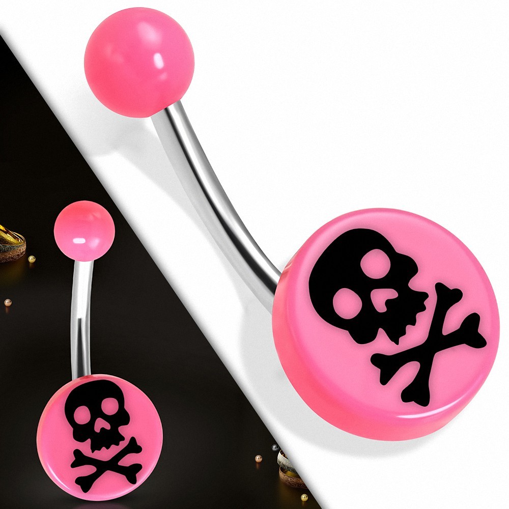 Piercing nombril en acier inoxydable en acrylique rose 3 tons crâne rond cercle | Boule-6mm | G-1,6 mm