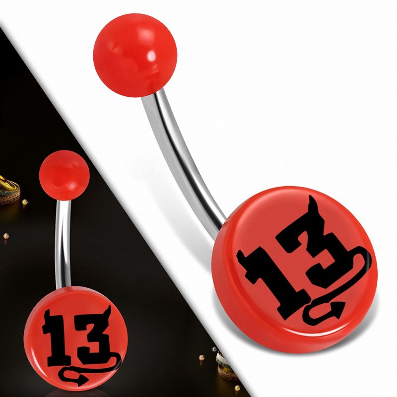 Piercing nombril en acier inoxydable avec queue maléfique en acrylique 3 tons rouge 13 Cercle rond | Boule-6mm | G-1,6 mm