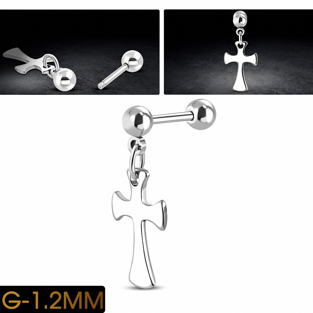 Piercing en acier inoxydable Pattee Cross Charm Tragus / Cartilage Barbell | Boule 4mm | G-1,2 mm